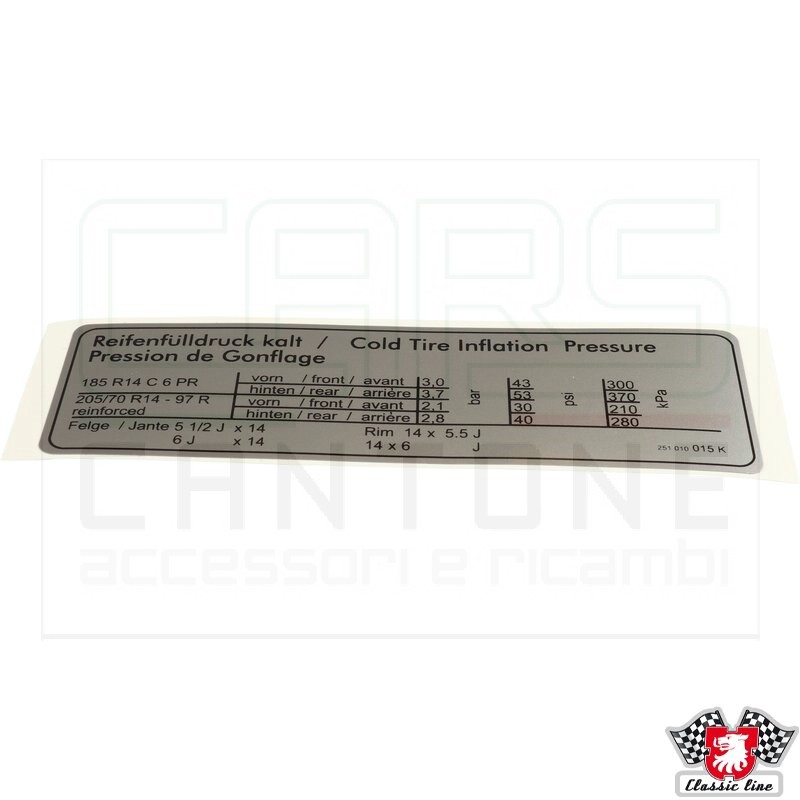 ADESIVO PRESSIONE PNEUMATICI T25 05/79-07/79 CERCHI 14 POLLICI NO SYNCRO