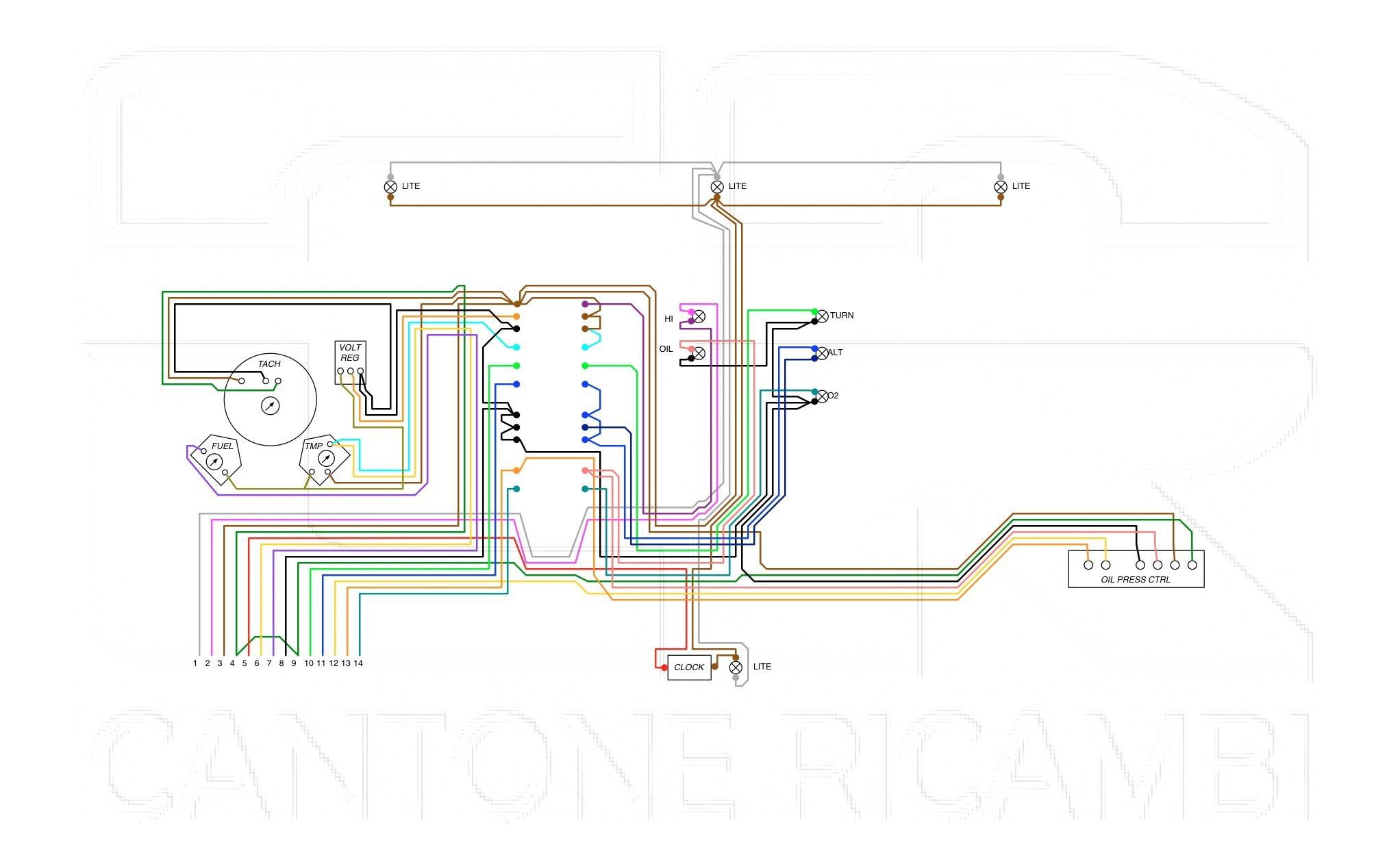SCHEMA IMPIANTO ELETTRICO A COLORI 8/1972-1975 IN INGLESE