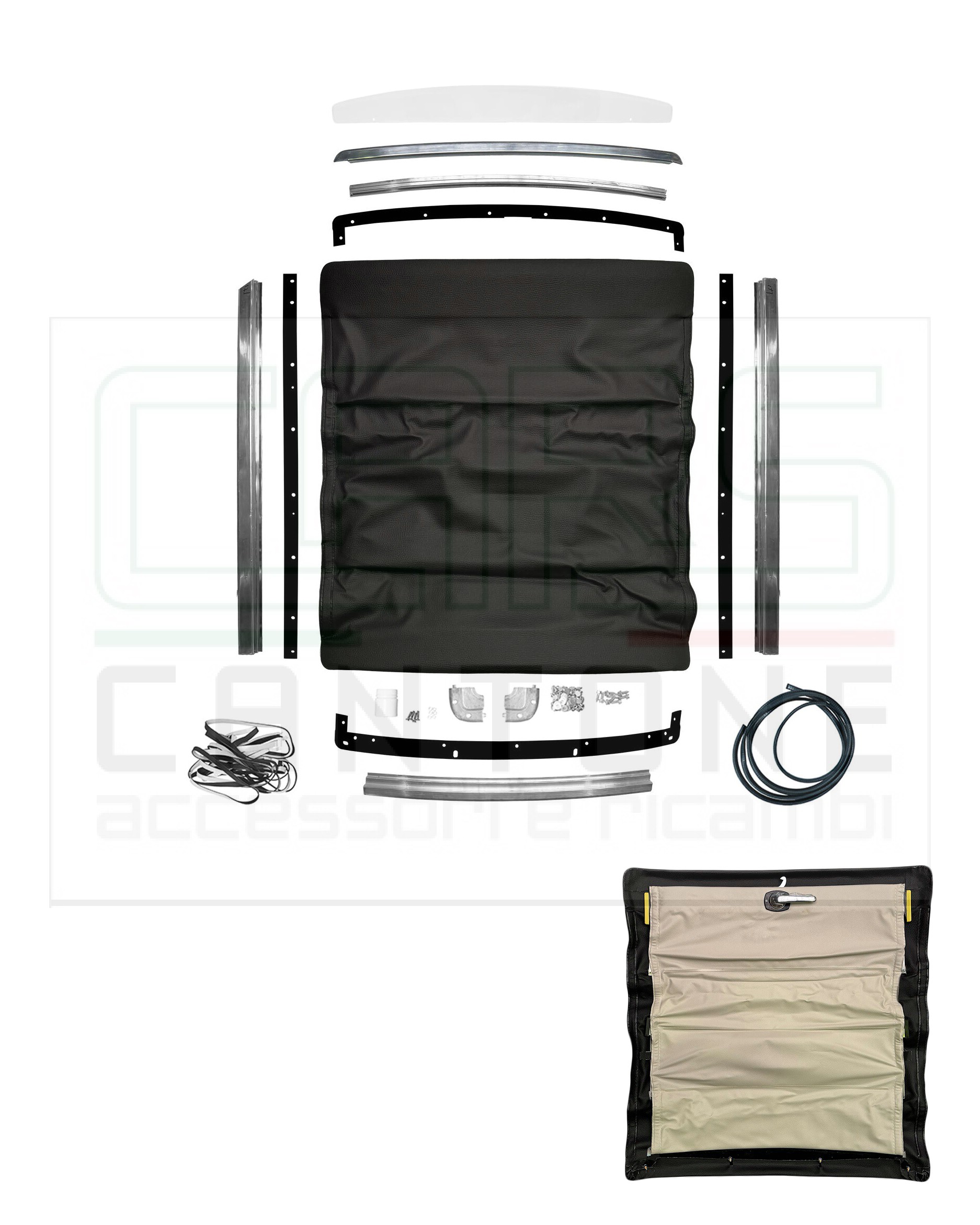 TETTUCCIO SCORREVOLE TELA CURVO 96CM X 105CM COMPLETO T1 NERO 2 PIEGHE